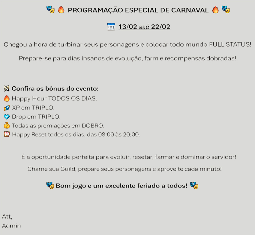 Programação Especial de Carnaval